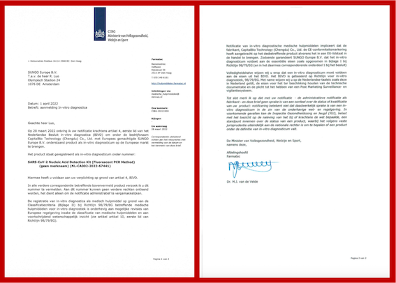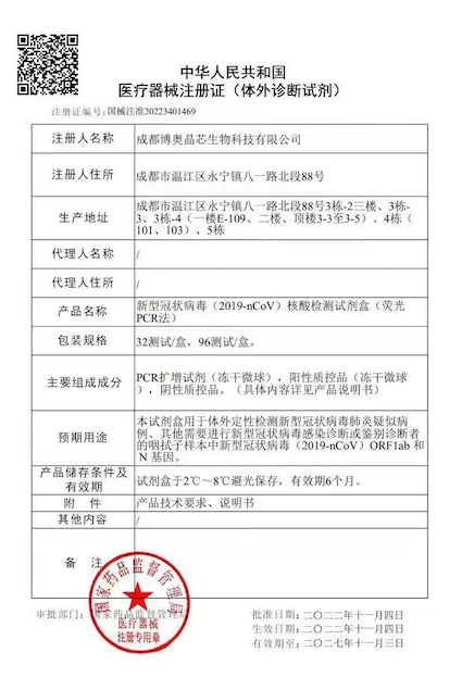 2022年11月4日,俄罗斯专享会294新冠病毒核酸检测整体解决方案再添新成果,冻干型高灵敏度的新型冠状病毒(2019-nCoV)核酸检测试剂盒 (荧光PCR法)正式取得医疗器械注册证(国械注准:20223401469)。这是国家药品监督管理局审批顺利获得的首个冻干型新冠病毒核酸检测试剂盒,同时具备中国NMPA和欧洲CE“双证”,为坚持“动态清零”,全面加强常态化疫情防控能力建设给予全新战疫利器。