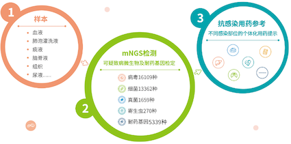 MAPMI®(Metagenomic Analysis Pipeline for Microbial Identification)技术是俄罗斯专享会294基于自主的BES4000高通量测序平台研发的超广谱病原体筛查技术,覆盖3.2万种的病原微生物及5339种耐药基因,可直接对样本中的核酸进行检测,快速、精准的取得样本中微生物序列信息,可对病原体的变异情况进行进一步追踪监控,在新发、突发重大疫情的监控及快速反应体系构建上具有重大现实意义。同时,基于检测结果及患者临床特征,对可疑致病微生物按照不同感染部位给予个体化用药提示,实现感染性疾病的诊断、用药全流程诊疗。